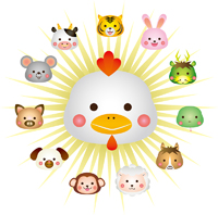 酉(鶏):鳥は別名で明けの鳥と呼ばれており、新年最初に鳴く鳥であることからも縁起が良いとされています。